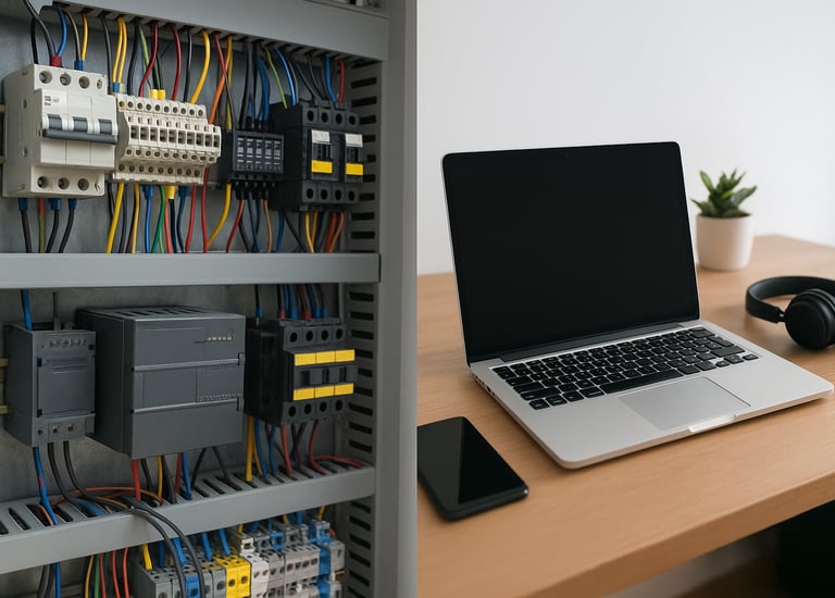 Industrial: Switchgear, PLCs/HMIs, power supplies & transformers